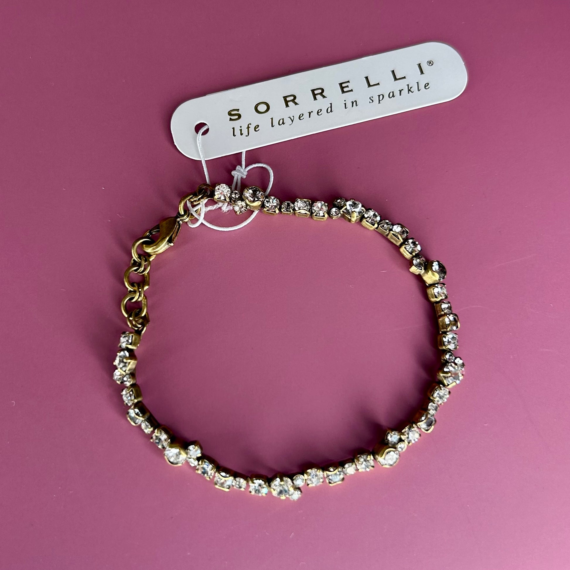 The Starlight Shuffle Bracelet by Sorrelli is your new everyday sparkle essential. This antique gold-tone tennis bracelet features a playful mix of crystal cuts and sizes, giving it a fresh, effortless shimmer that catches the light from every angle. Whether worn solo or layered with your favorites, it’s an instant mood-lifter. And with Sorrelli’s lifetime warranty, this piece is guaranteed to keep shining for years to come.