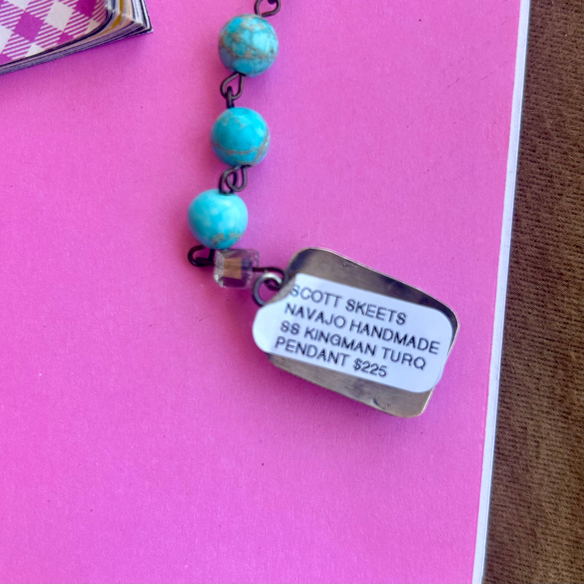 -Sterling Silver Kingman Turquoise Pendant by Navajo Artist Scott Skeets