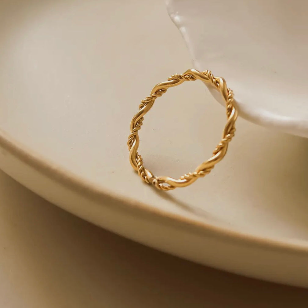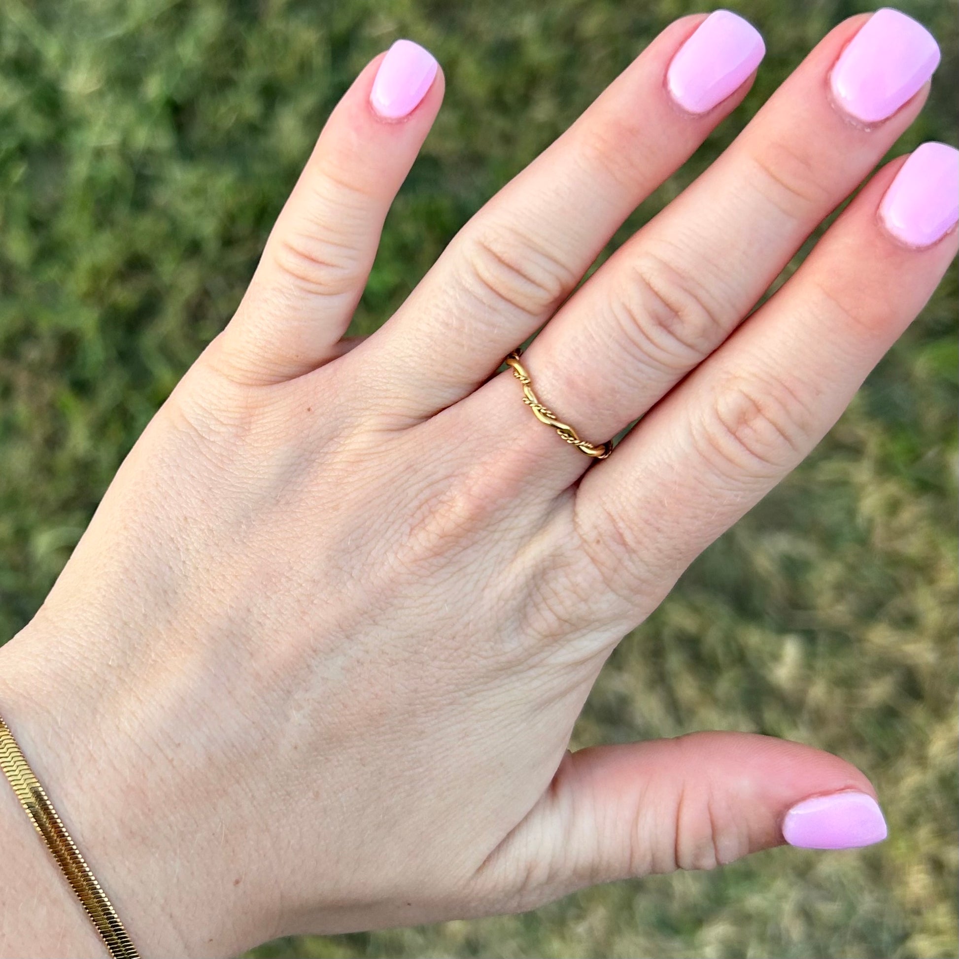 Rope in some style with our Braided Rope Ring! Made with 18 karat gold plated stainless steel, this ring is available in sizes 7 and 8 and is perfect for stacking.